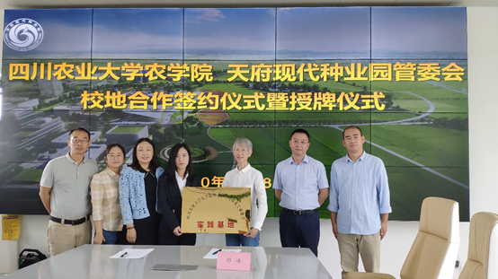 9月18日上午,suncitygroup太阳新城党委副书记黎明艳(主持工作),院党委副书记、副院长王西瑶,副院长王强,种子科学与工程专业负责人蒲至恩和李伟等一行到天府现代种业园,洽谈合作事宜并签订人才培养合作协议。天府现代种业园管委会主任祁峰,产业部部长邢鹏和园区开发建设有限公司王红睿副总经理,出席了签约和授牌仪式。