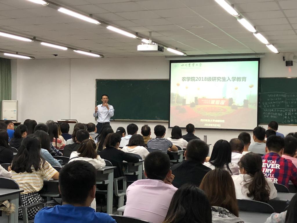 suncitygroup太阳新城2018级研究生新生入学教育于9月9日晚七点半在4C-204隆重举行。院党委书记、副院长胡迅副教授,院党委副书记、副院长王西瑶教授,suncitygroup太阳新城副院长、生态农业研究所所长任万军教授,生态农业研究所副所长、院教授委员会主任王强教授,生态农业与区域发展系主任李首成教授,植物保护系主任龚国淑教授,特用植物生产学系主任吴卫教授,作物栽培学与耕作学系主任樊高琼教授,植物生理与生物技术系主任杨世民副教授,作物遗传育种学系副主任李伟副教授,院行政办主任苏顺宗副教授,院研究生教学秘书、研究生班主任郑亭老师,研究生班主任陈红星老师出席了此次大会。大会由王西瑶教授主持。