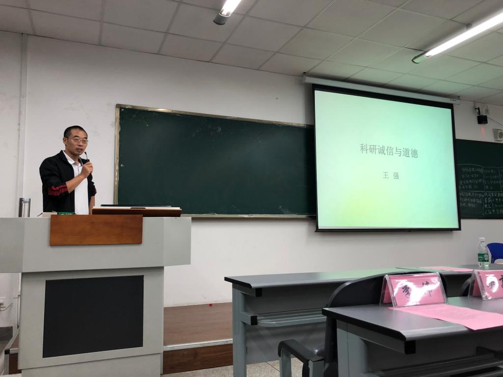 王强教授作了科研诚信与道德专题讲座,他分别从学术规范、学术诚信现状、学术不端、不当行为等方面紧密围绕主题展开阐述,充分阐述了科研诚信与道德的重要性和必要性,旨在引导全体研究生新生在未来的科学研究道路上,切实弘扬以“追求真理、实事求是、崇尚创新、开发协作”为核心的科研精神。随后,院研究生教学秘书郑亭对研究生新生的分班以及重要的研究生培养环节进行了详细的解读。最后,suncitygroup太阳新城研究生会主席代承东以精美的PPT、精彩的内容、幽默风趣的语言进行suncitygroup太阳新城研究生会招新宣讲,赢得台下热烈的掌声。